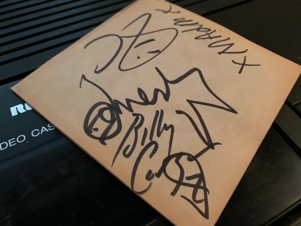 I picked up the Machina CD for signing. I can’t recall if I paid for it before or after or at all. All I remember is opening it while in line, looking for the best place on the liner notes to get my autographs as I trudged forward in the corral.