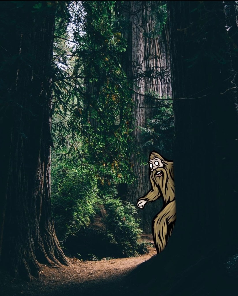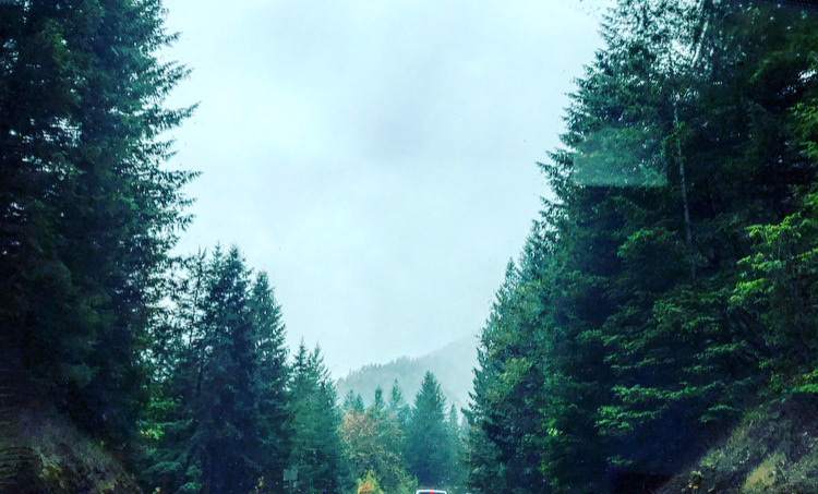 Taking my eyes off the wet road to glance to the side, in a blurry second of pareidolia, I noticed a Sasquatch in the rain, peacefully mushroom hunting and gathering berries for her cubs. The hairy creature of American folklore and legend, bellowed out to me in an echo of deep bluster as we passed. I lost her in my rearview as we barreled on through woods.