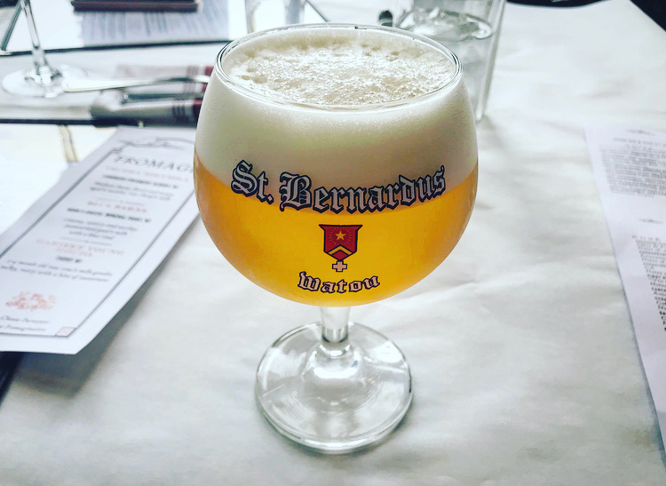 Wisconsin ham Croque Monsieur with gruyere and béchamel. Frites somewhere over there to establish a contrast to my grail of St. Bernardus Belgian Tripel. A giant pour in the same goblet once entrusted to Joseph of Arimathea. The very cup that caught the blood on Golgotha.