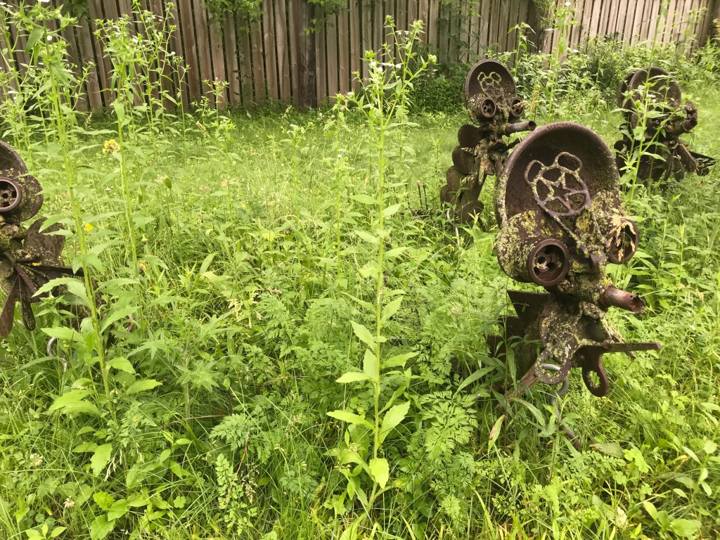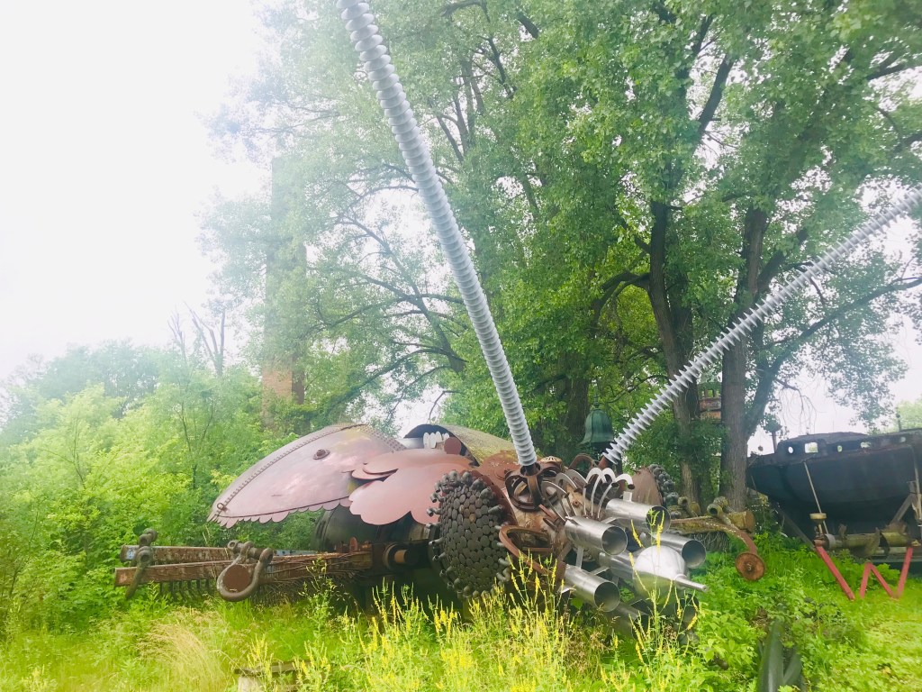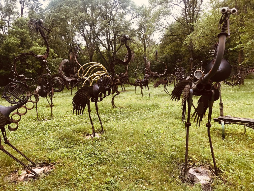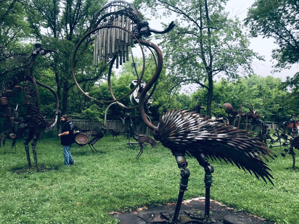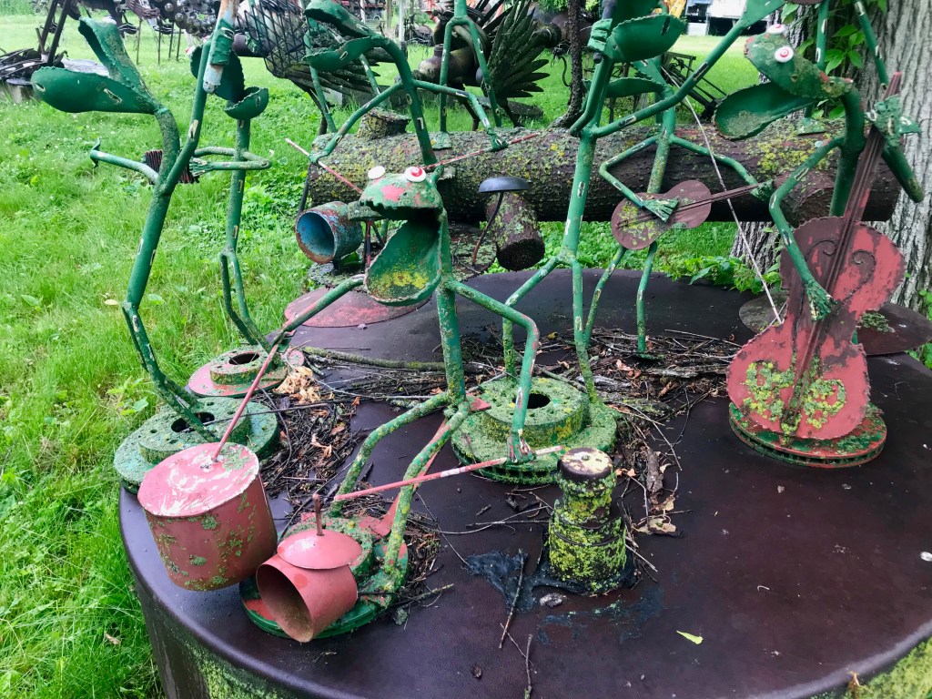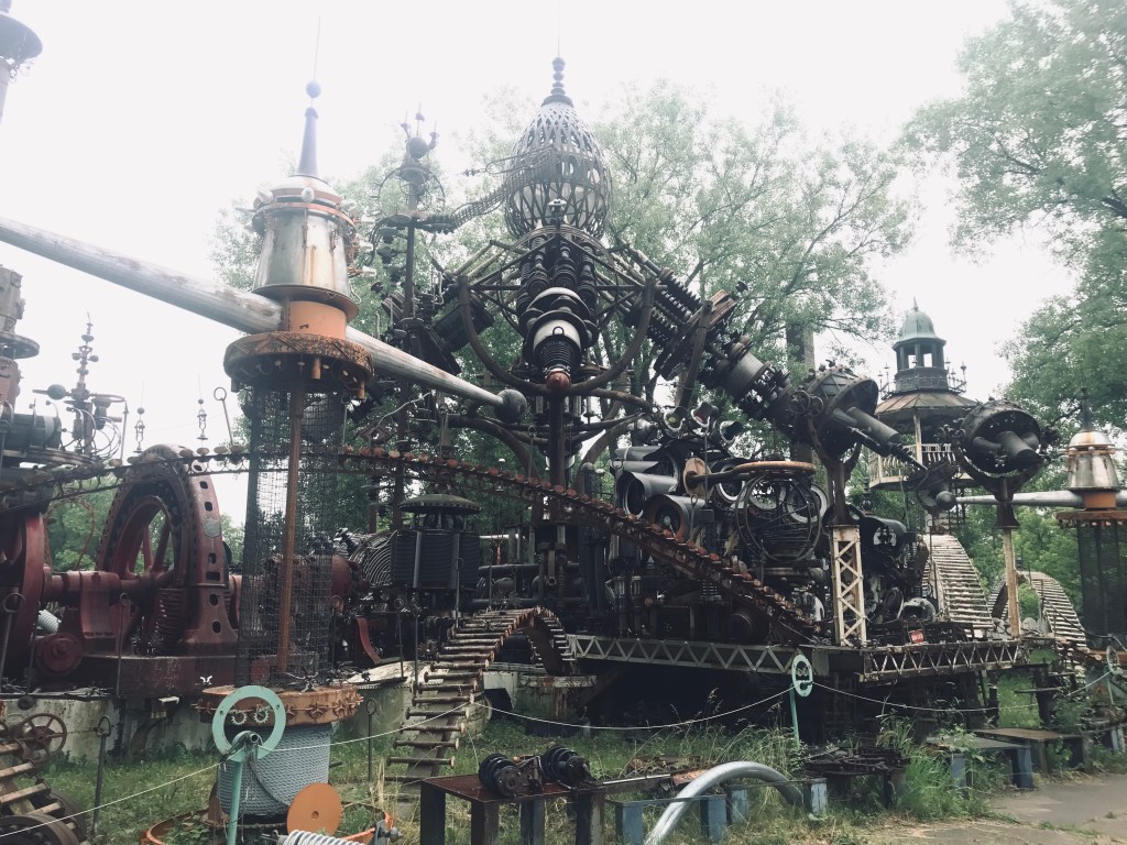The only blueprint was in the mind of the now resting in slumber. A wild-eyed Doc Brown: Dr. Evermor, an outsider with a lot of whimsy and even more industrial scrap metal. Two 1880s Edison dynamos and lighting rods accentuate the piece above the seventy-member Bird Band Orchestra, The Epicurean, and gigantic insects like Juicer Bug and Arachna Artie.