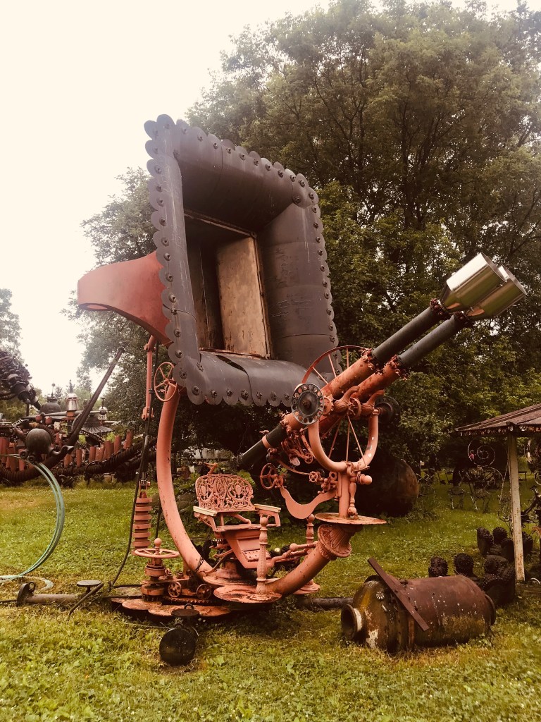 Leisurely travelling from the future by glass pod I traversed wormholes to visit Dr. Evermor’s Sculpture Park in Sauk County, Wisconsin. My second coffee of the day was from a pause at Rockford Roasting Company. My nostalgia for this particular roastery-café is colossal since I had worked on a Tollway project in the area for two years. Folding geometrical space-time it was a pining of sentimentality to be back.