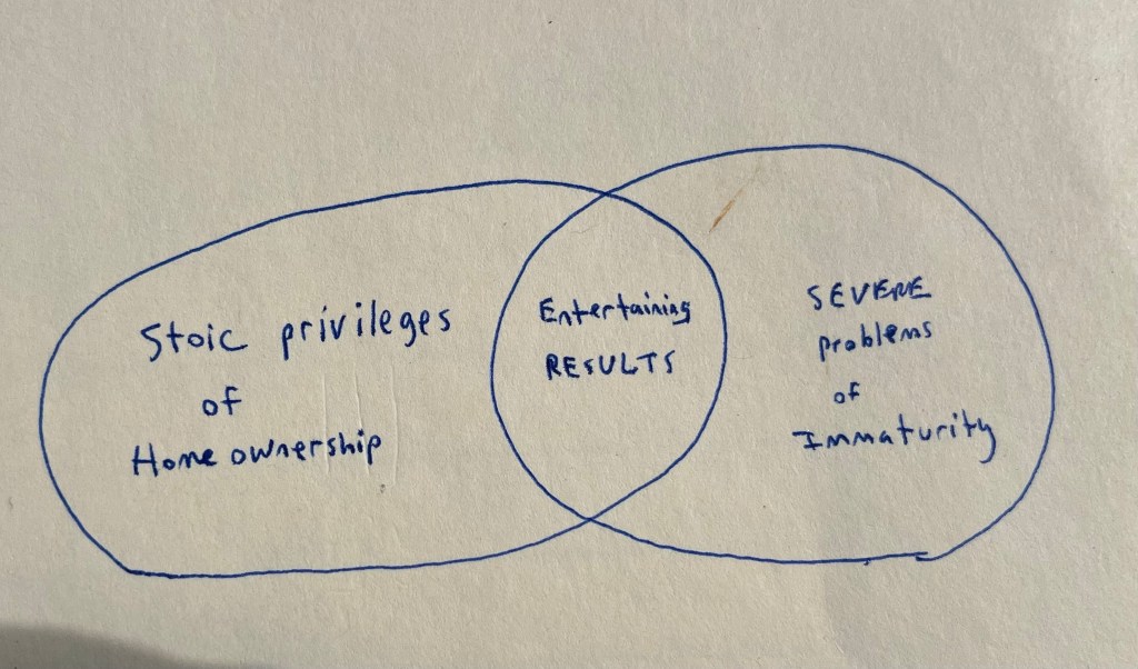 As time went on the rental room became a revolving door of various friends who would live with us for a stint paying us an increasing dollar amount, ticking upward per tenant as our socialism slowly gave way to capitalism.