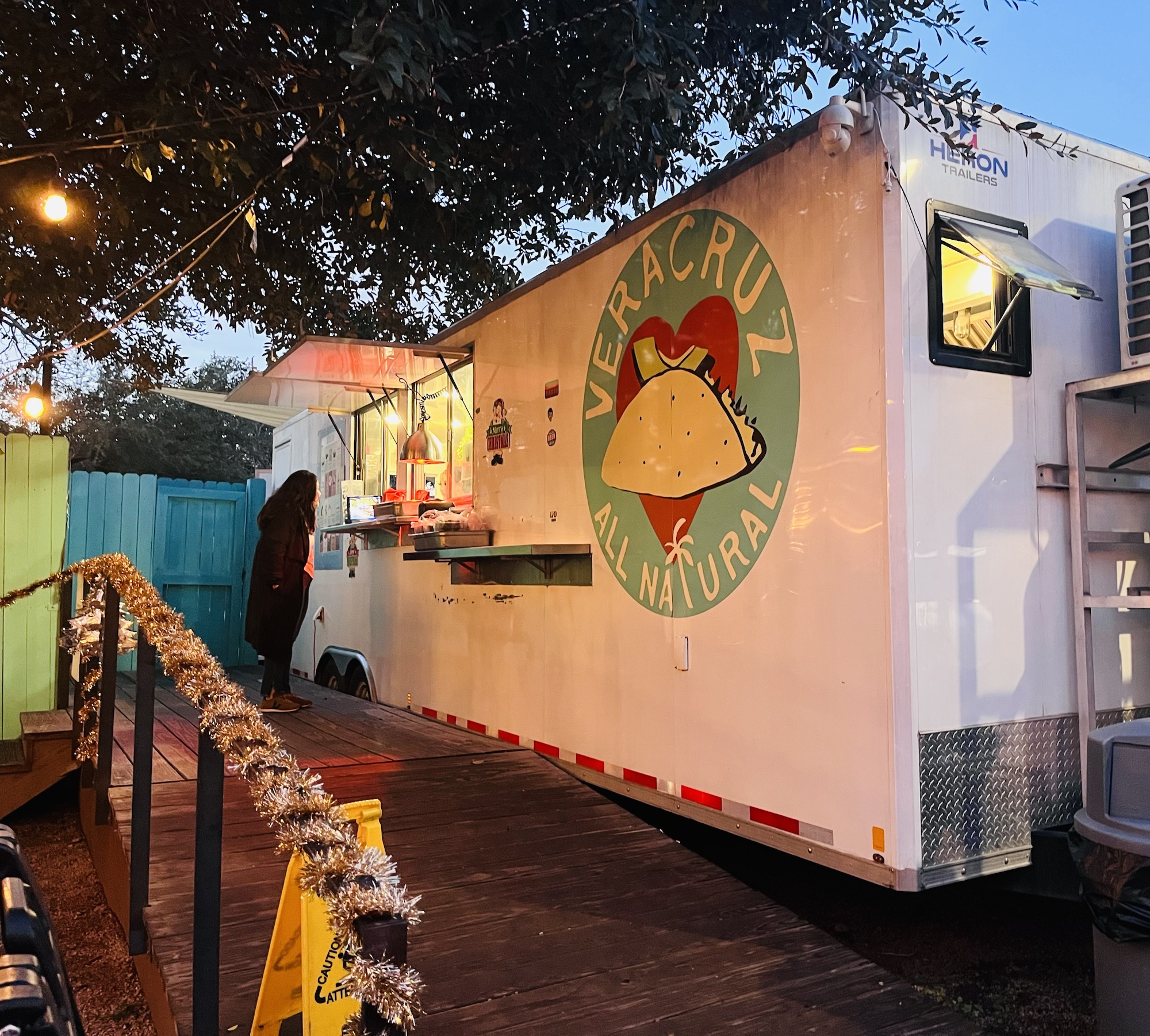 Before checking in to The Yellow Treehouse, we stopped for dinner at Radio Coffee & Beer on Menchaca Road. Neon cherry buzzing signage felt heraldic of old South Austin. Veracruz All-Natural has a food truck there, tucked into the edge of a tree-lined outdoor patio setting.