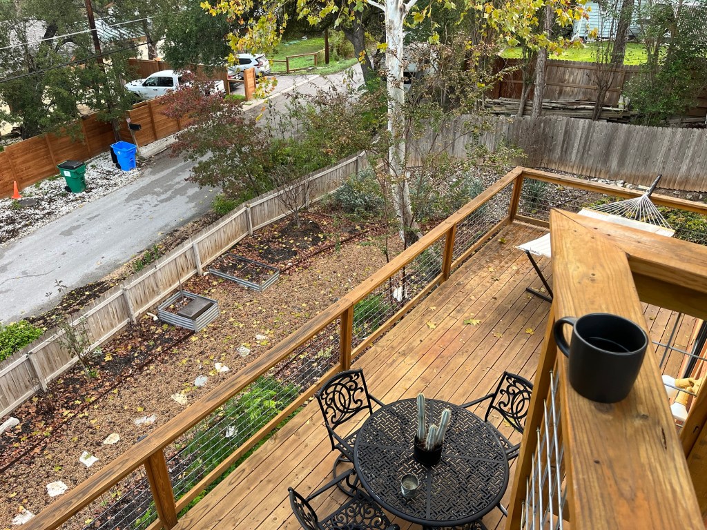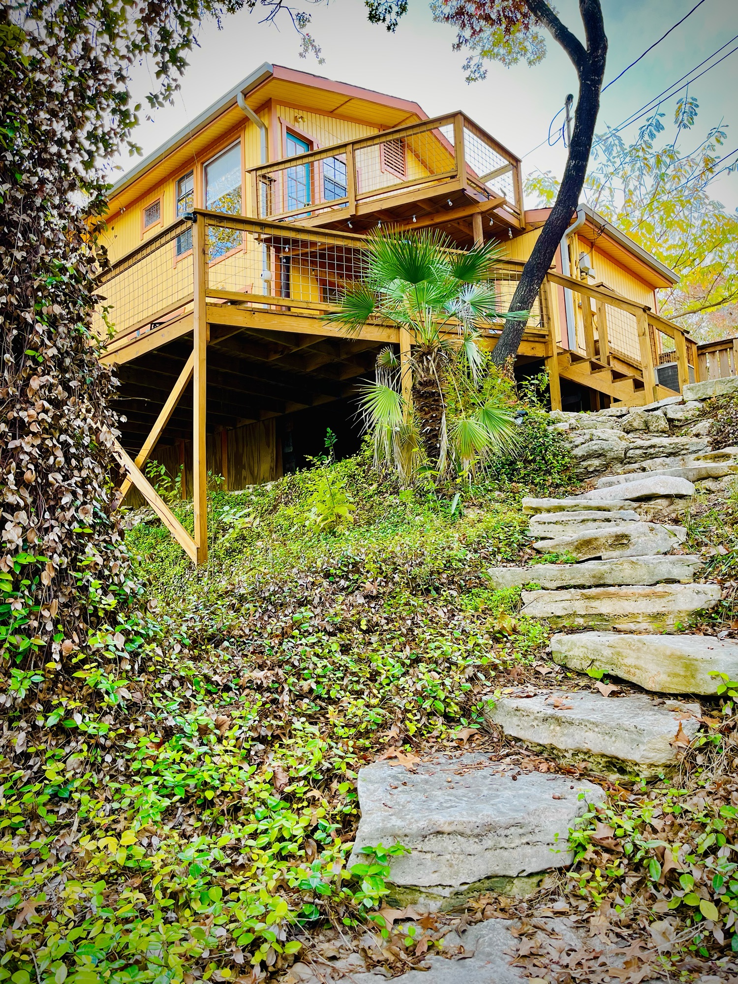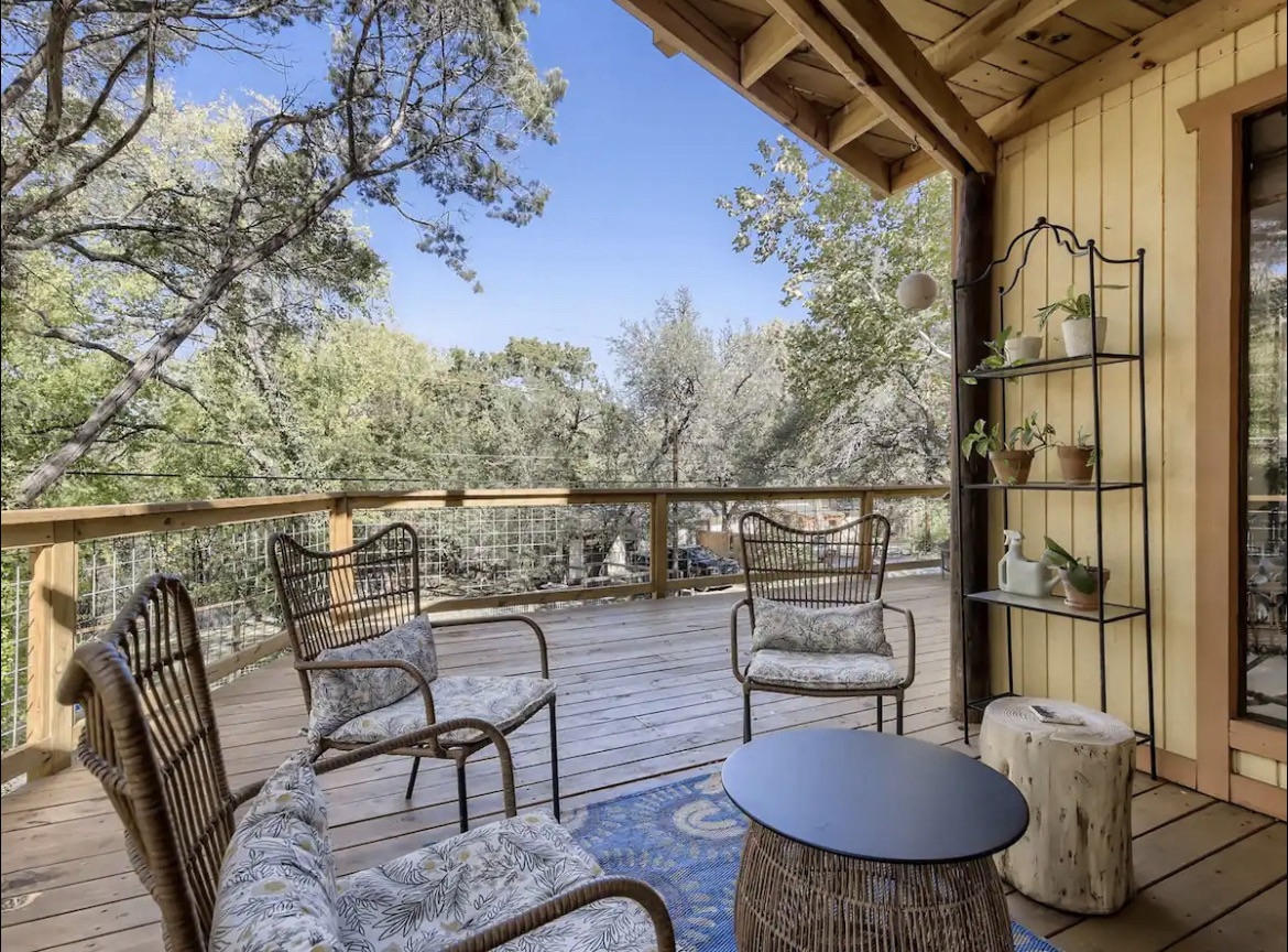 Set on a mini mountain in Yacht Harbor, The Yellow Treehouse was our quarters. It was a place for our twin three-year-olds to climb and explore within the Weirdest City in Texas. Rock gardens and secret gates in a maze of wooden decks, and doors leading to hidden patios. Stairs of stone from the Aqua Azul Path below. A greenhouse and a hammock. A turntable, books, and incense.