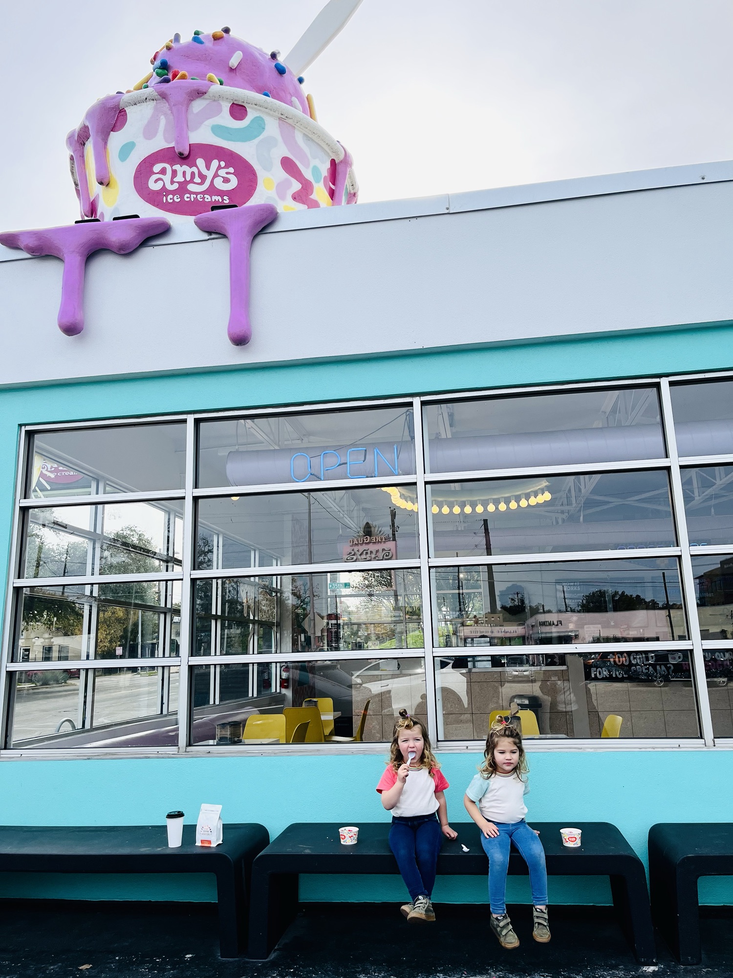 Post-flight we devoured a bag of crunchy Elmo straws at Austin Bergstrom International Airport, waiting for the rental car and the minor fiasco of borrowing and installing two car seats.