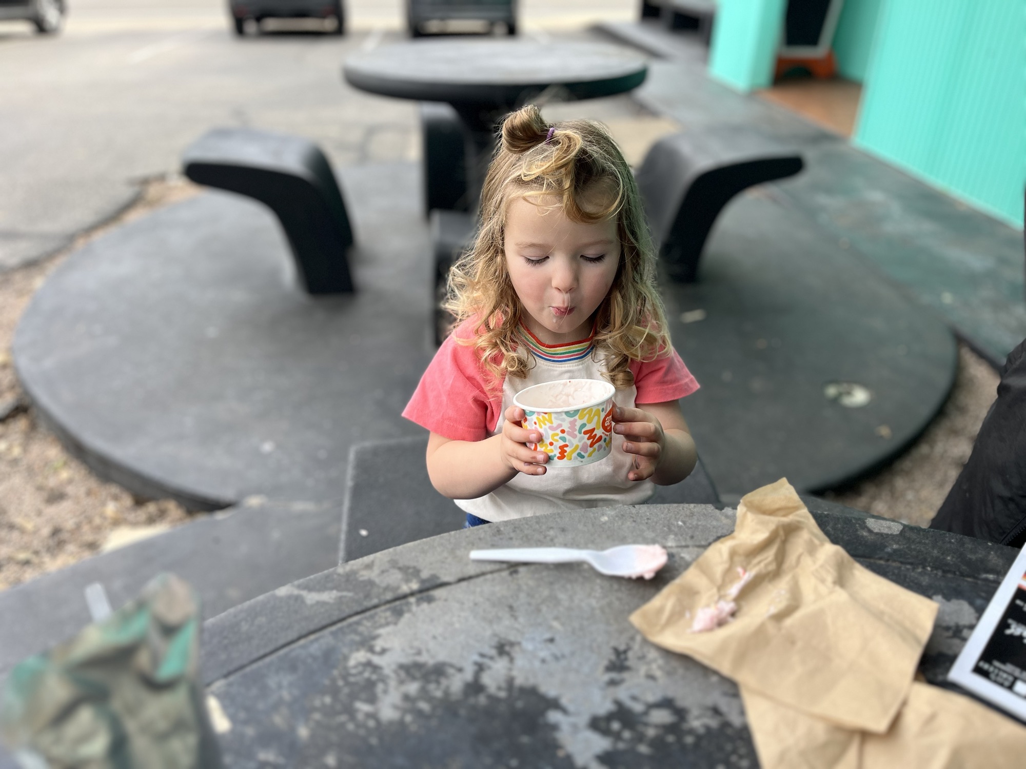 The plan was to meet my friend Joey and his husband at Jester King for lunch. We required a snack break so we decided to stop at a local McDonalds, known to our kids as “Old MacDonalds” for some pre-packaged slices of apples.