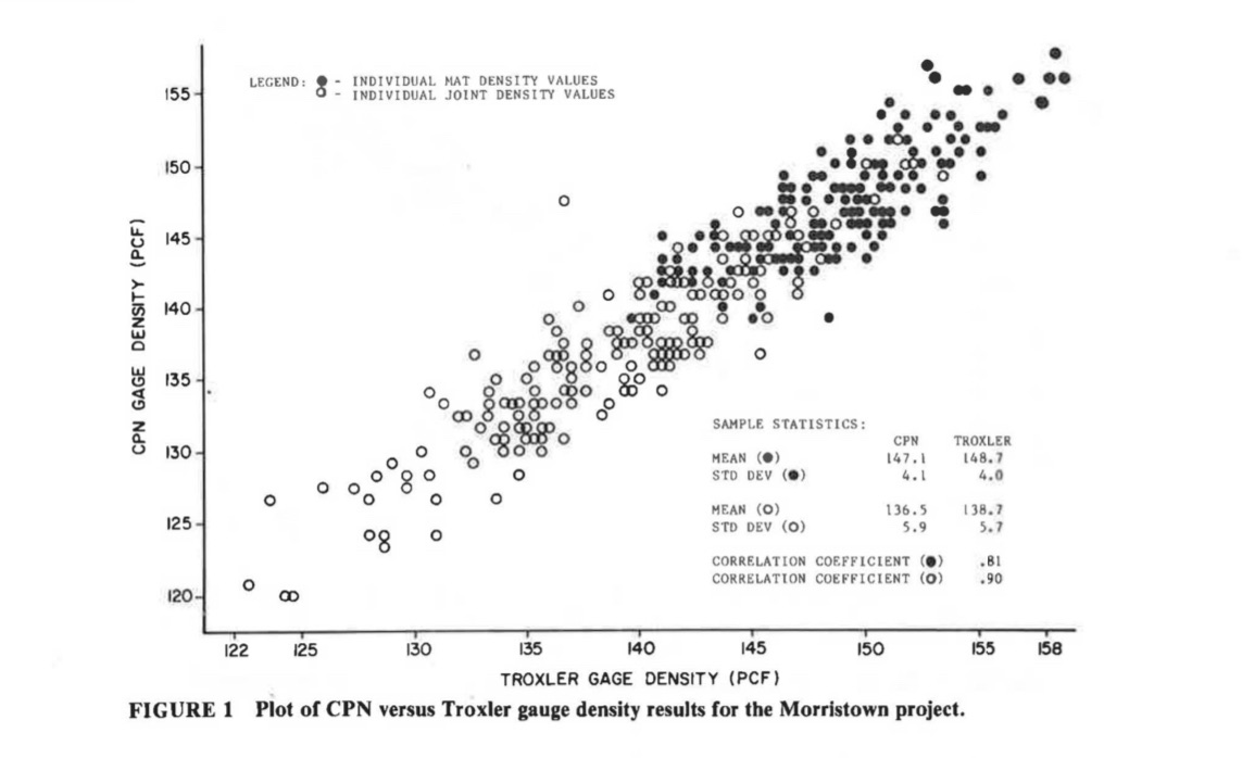 I couldn’t yet comprehend that if I set the gauge in a more “dense-looking” spot, I could get higher results. Since the tool reads air voids and gives you a weight, it’s compared against a lab standard value. If you set the gauge on an oily area, the density will read higher even if it’s not representative of the lab test.